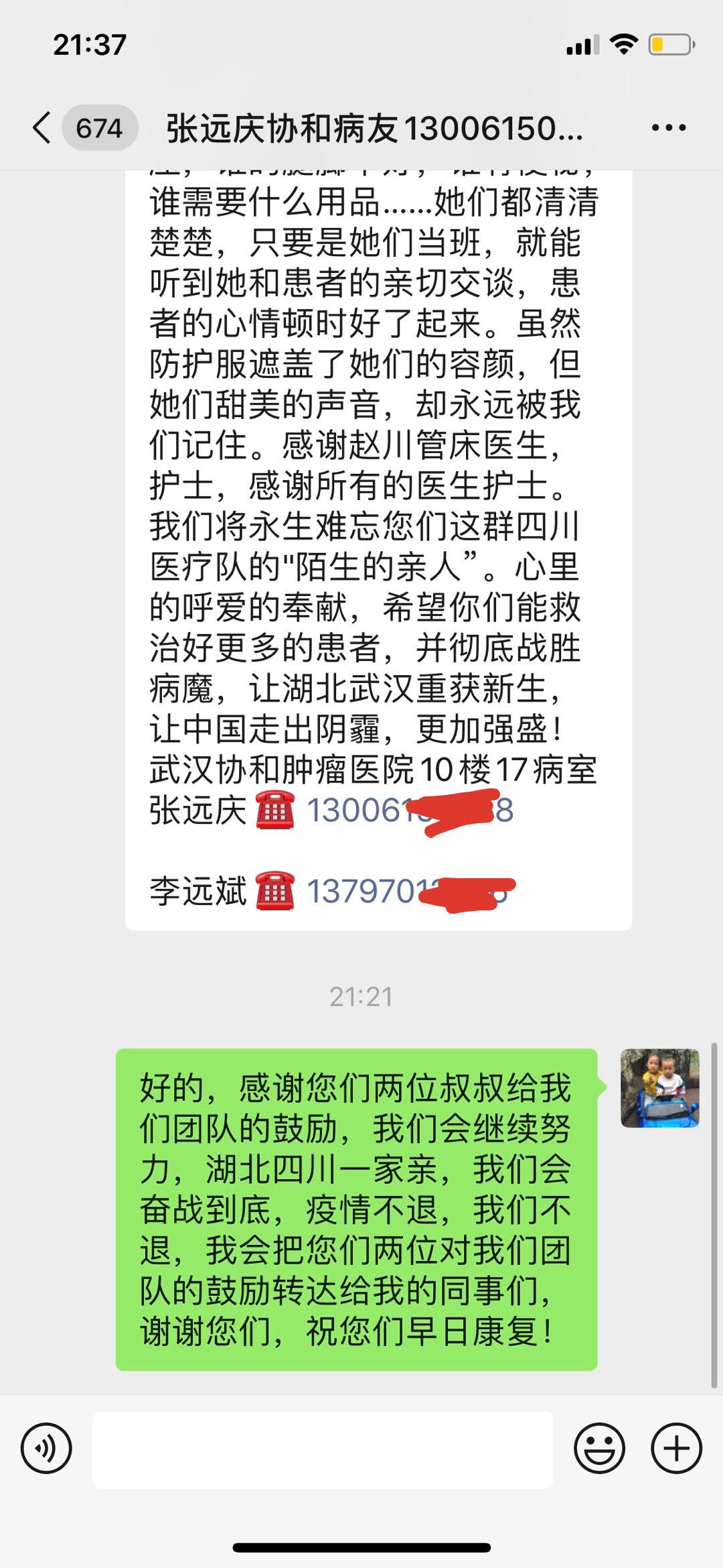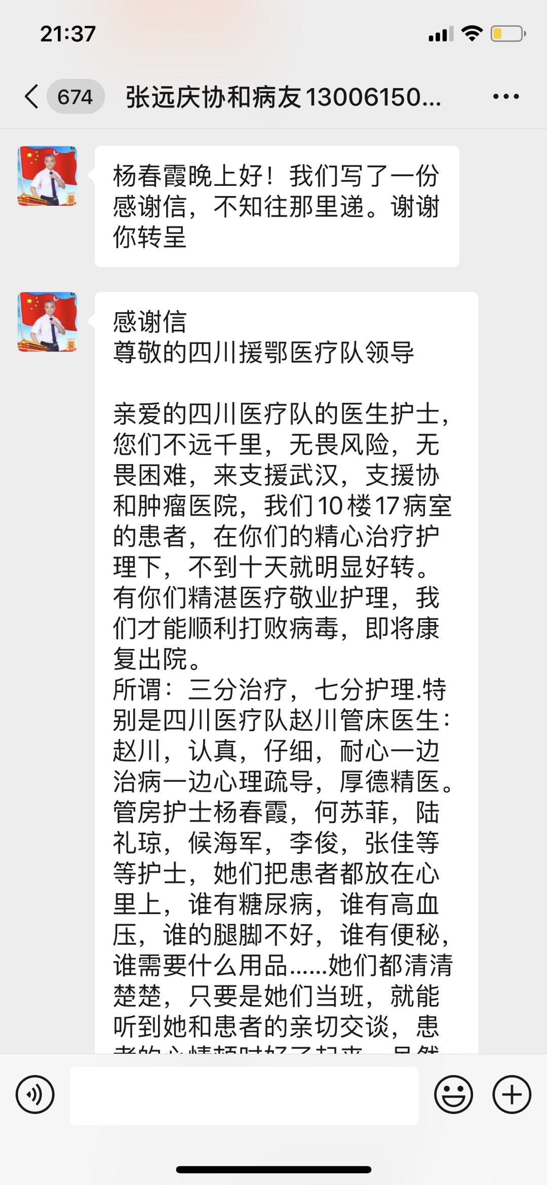 武漢協(xié)和病友給四川援鄂醫(yī)療隊的一封感謝信(點名表楊我院楊春霞)
