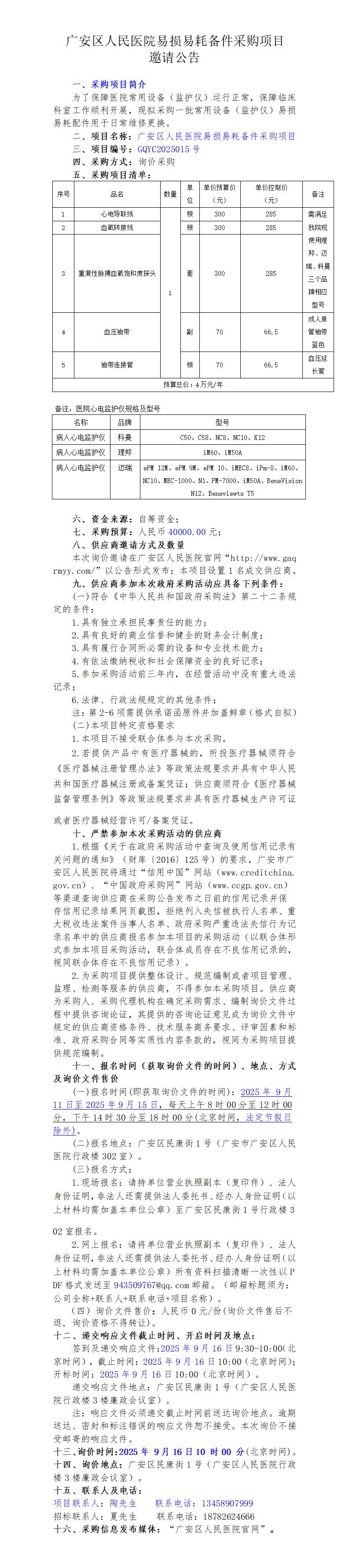 廣安區(qū)人民醫(yī)院易損易耗備件采購項(xiàng)目 邀請公告